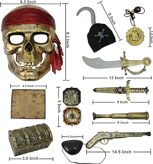 GIFTEXPRESS 11pcs Deluxe Halloween Pirate Costume Accessories for Kids, Pirate Role Play Set Halloween Pirate Costumes
