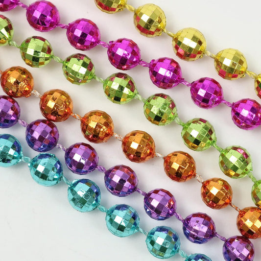 GIFTEXPRESS 33" Mardi Gras Beads Necklaces, Metallic Assorted Neon Color Disco Ball Beaded Necklace (Pack of 12)
