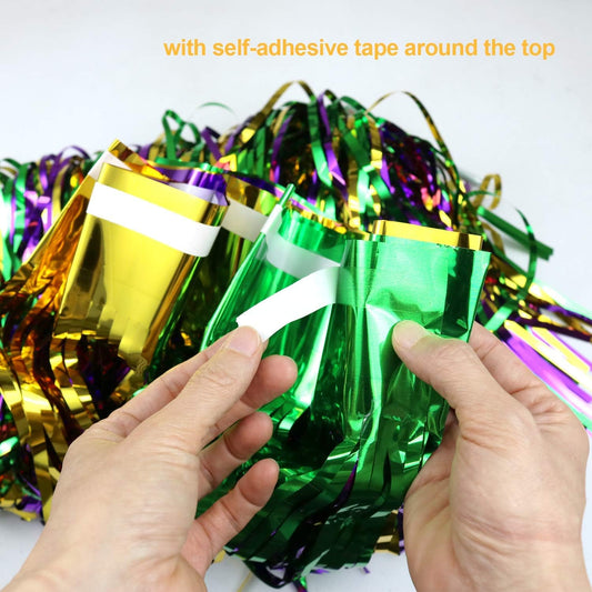 GIFTEXPRESS 36" * 100" Mardi Gras Metallic Foil Fringe Curtain (Pack of 2)