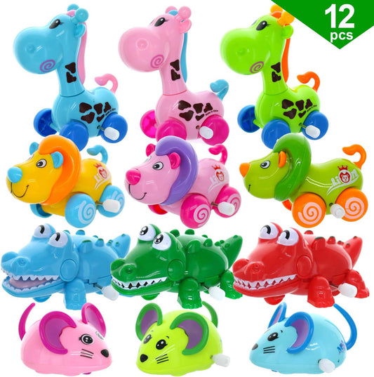 GIFTEXPRESS 12pcs 3"-4" Assorted Zoo Animal Wind Up Toys