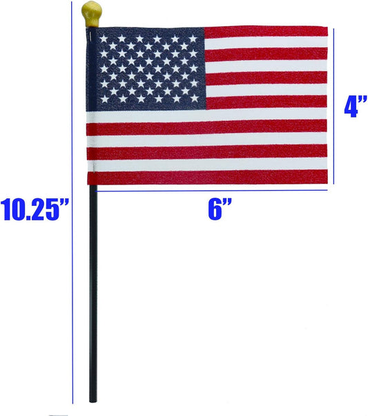 GIFTEXPRESS 4"* 6 " American Flags, Made in USA Small American Flags on Black Staff (Pack of 12)