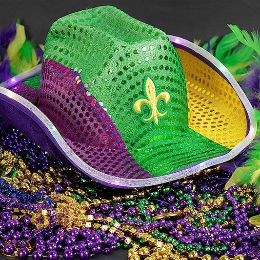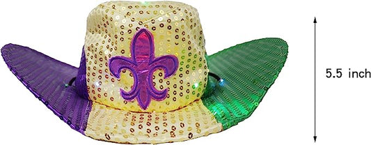 GIFTEXPRESS Adult LED Light-UP Mardi Gras Sequin Cowboy Hat
