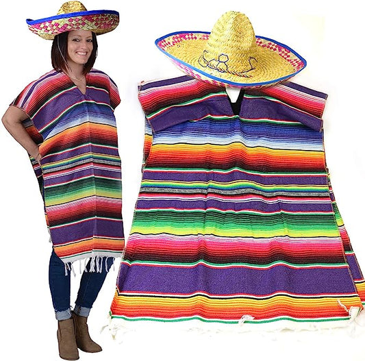 GIFTEXPRESS Mexican Poncho and Sombrero Set (Adults/Kids Set)