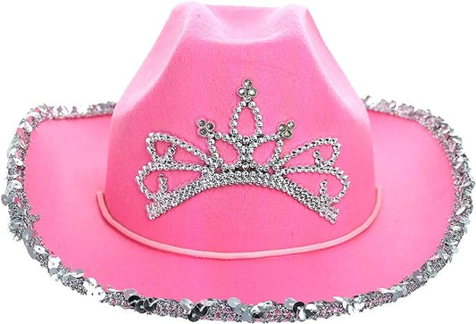 GIFTEXPRESS Child LED Blinking Pink Tiara Cowgirl Hat, Light Up Cowboy Hat