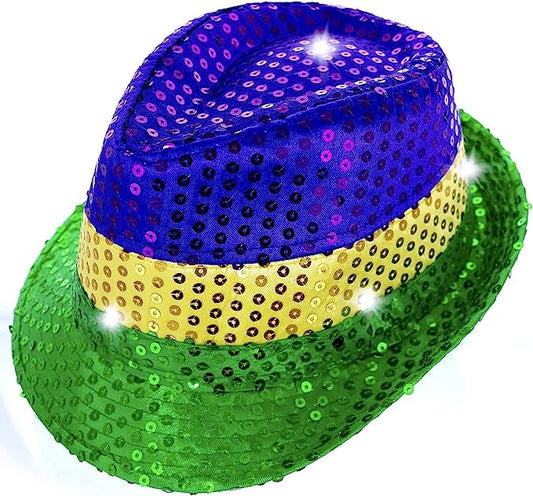 GIFTEXPRESS Adult LED Light-UP Mardi Gras Fedora