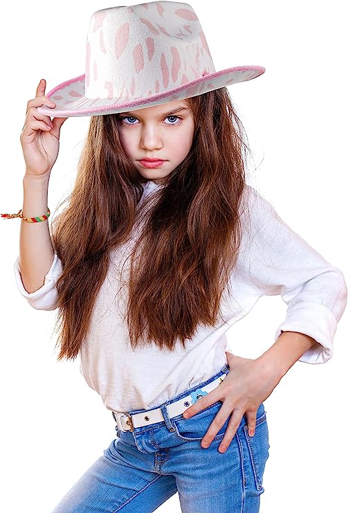 GIFTEXPRESS Pink Cow Print Felt Cowboy Hat (Pack of 6)