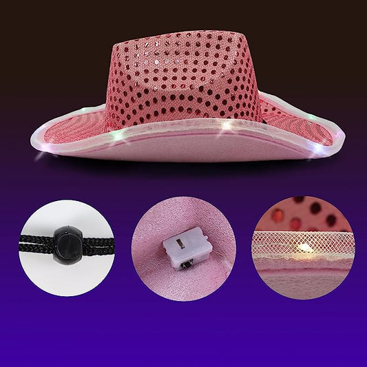 GIFTEXPRESS 4pcs Light Up Led Flashing Cowboy Hat wit Sequins