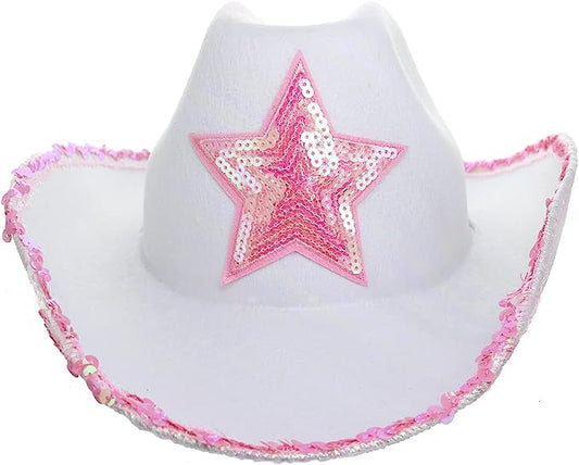 GIFTEXPRESS Pink Sequin Star White Felt Cowgirl Hat
