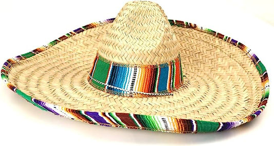 GIFTEXPRESS Adults Mexican Sombrero Hat with Serape Trim (21" * 20" * 6.5")/(16.5" *14" * 5.5")